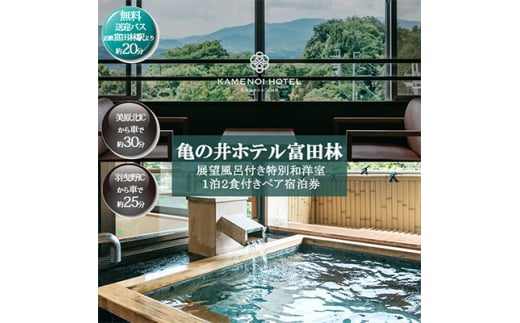 亀の井ホテル富田林 展望風呂付き特別和洋室 1泊2食付きペア宿泊券【1096683】