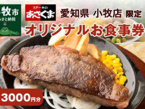 【愛知県 小牧店限定】ステーキのあさくまオリジナルお食事券3000円