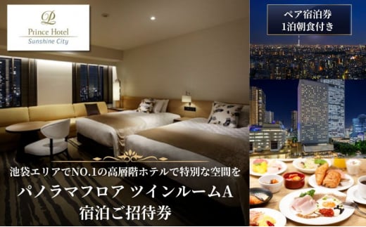 宿泊券 東京 サンシャインシティプリンスホテル パノラマフロア ツインルームA 1泊朝食付き 宿泊