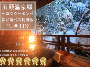 【五頭温泉郷】 割引クーポン 15,000円分 ラジウム 温泉 名湯