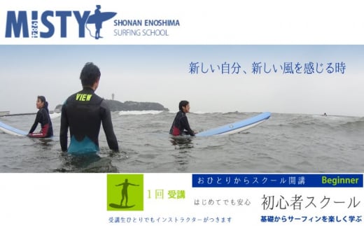 サーフィン ミスティ湘南江ノ島 サーフィンスクール 初心者コース 1回 道具レンタル込み 片瀬海岸