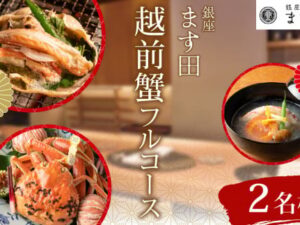銀座ます田 越前蟹フルコース(全10品) ペアお食事券 / かに 越前がに 懐石料理 日本酒 ワイン