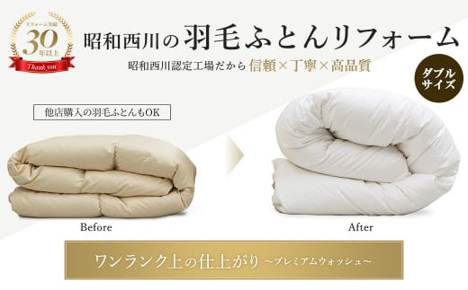 昭和西川 羽毛かけふとんリフォーム ホワイトダック90% (ダブルサイズ1枚) リフォーム 打ち直し