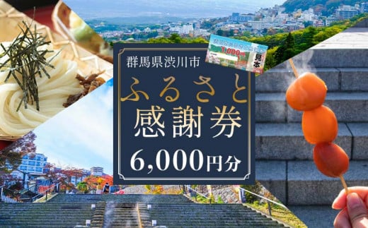 渋川市ふるさと感謝券 6,000円分(1000円×6枚) 伊香保温泉 うどん 宿泊 旅行 観光 ホテ
