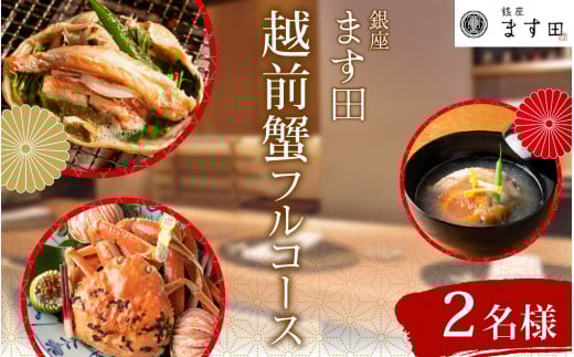 銀座ます田 越前蟹フルコース(全10品) ペアお食事券 / かに 越前がに 懐石料理 日本酒 ワイン