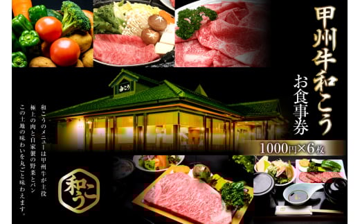 4-6.「甲州牛和こう」お食事券6枚(1000円×6枚)