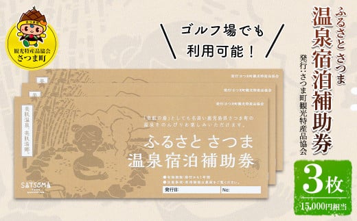 s019 ふるさと さつま 温泉宿泊補助券(3枚:15,000円相当)鹿児島 温泉 チケット 満喫
