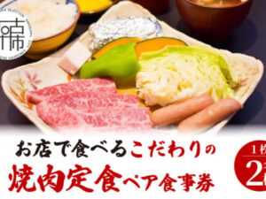志方牛定食ペア食事券(特上バラ・焼き野菜・ご飯・味噌汁)《 国産牛 食事券 ペア 焼肉 チケット
